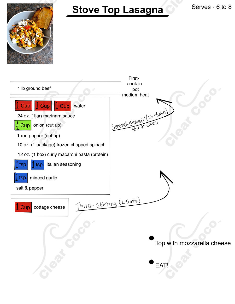 The method I am presenting to you in these recipes is Patent Pending. It was created to solve the everyday problems cooks face by throwing out the traditional format of recipes and replacing it with clear, practical solutions. Clear Coco simplifies cooking by removing guesswork, skipping the fluff, and showing you exactly what to do next—so cooking doesn’t feel like a test you’re set up to fail. No long paragraphs, no hard-to-find ingredients —just clear, visual guidance that is easy to scan and designed to help you create delicious results with confidence. Cooking should feel doable, enjoyable, and fun—and this is your cheat sheet.